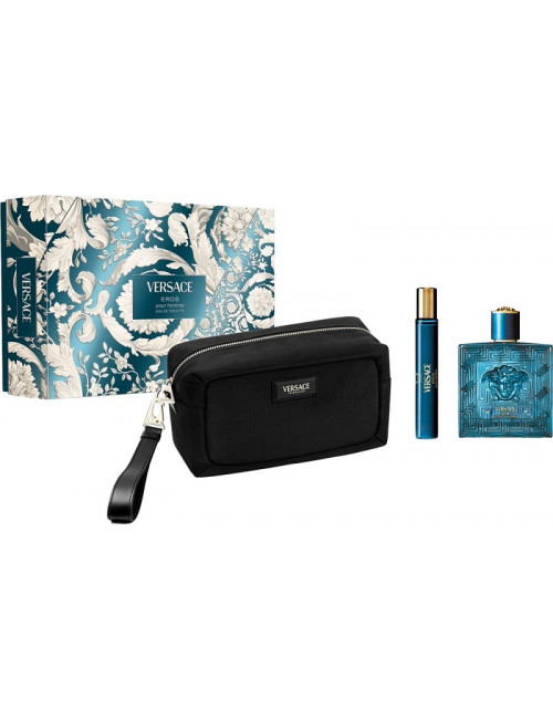 VERSACE EROS MEN EDT 100ML +TRAVEL SPRAY 10ML +BLACK POCHETTE