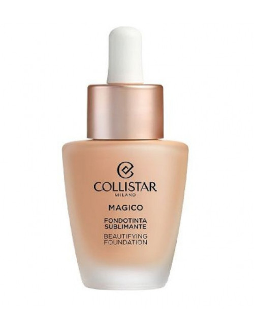 È magico: non copre, ma svela, uniforma e sublima l’incarnato. È il nuovo Magico Fondotinta Sublimante, per una pelle perfezionata e levigata, dal colorito sano e radioso, in un solo gesto! La sua texture shake-well, fluida e dalla sensorialità vellutata, si fonde perfettamente con la pelle, donando un finish opaco naturale, in grado di attenuare la lucidità ed esaltarne la naturale radiosità. Il segreto dietro la magia? Un perfetto mix di attivi skincare, selezionati dalle migliori formulazioni Collistar: Acqua di Riso Italiano iperfermentata, dall`azione uniformante e antiossidante, Niacinamide, per una pelle levigata e pori minimizzati e, infine, un Peptide Biomimetico, che favorisce la naturale pigmentazione della pelle, per un colorito sano e radioso. Dall’effetto trasformativo, Magico Fondotinta Sublimante migliora la qualità e l’aspetto della pelle, rendendo l’incarnato subito più uniforme e valorizzando ogni prodotto make-up applicato successivamente. Modulabile goccia dopo goccia, grazie al pratico applicatore dropper, garantisce una coprenza da leggera a media – personalizzabile a seconda dell’effetto desiderato.Basta una goccia per svelare la tua bellezza autentica.