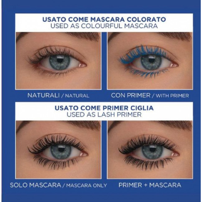 Non solo un primer, ma anche un mascara colorato! Usalo da solo come mascara blu per un effetto pop.